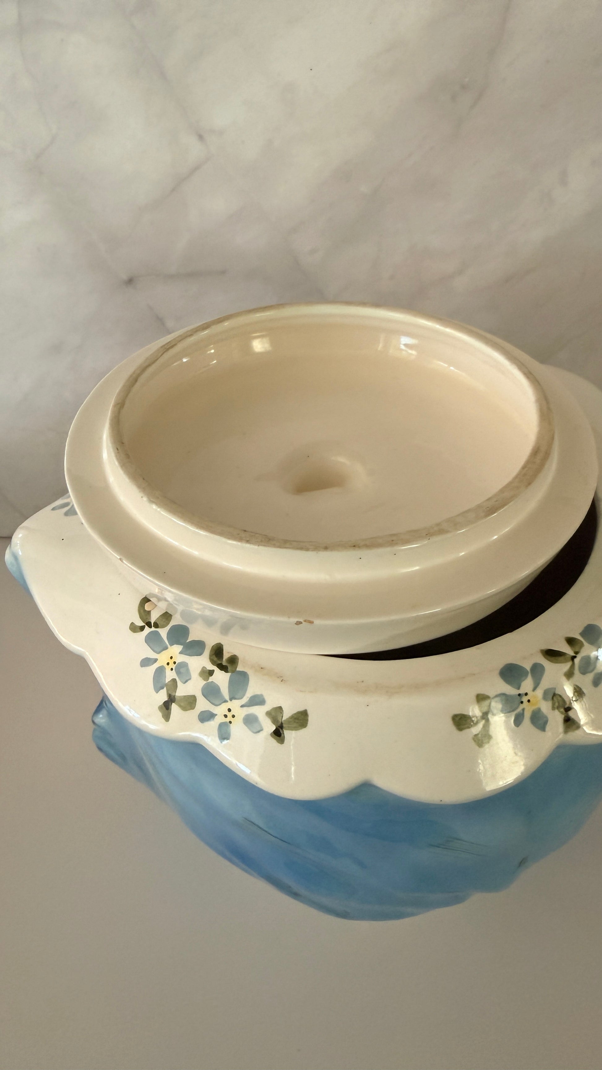 Lefton 1950s Miss Priss Cookie Jar. The lid has some minor fleabites from age but does not affect aesthetic of overall condition of cookie jar. Makers label intact and stamped.
